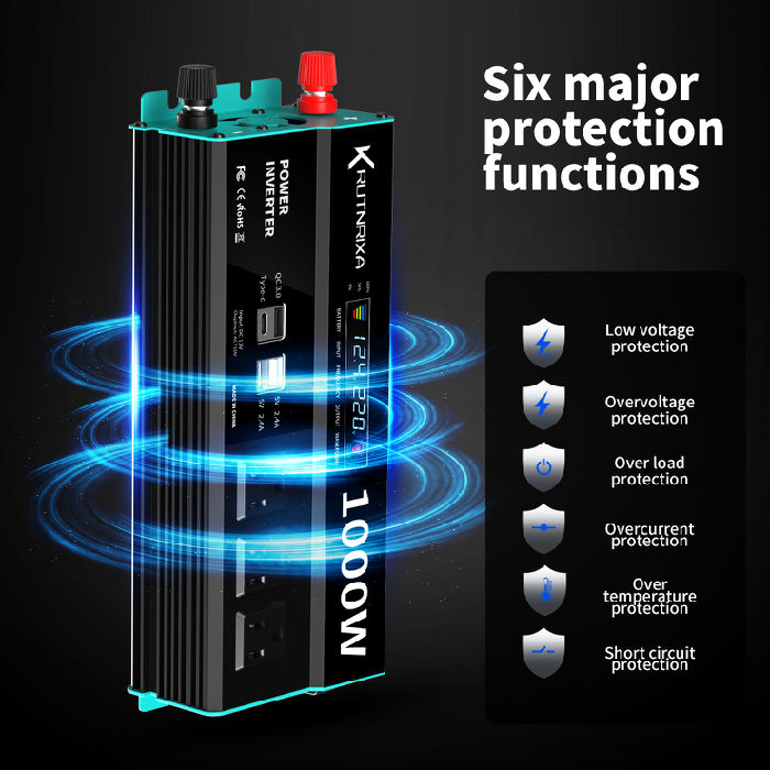 Modified Inverter 500W 800W 1000W 1500W 2000W 3000W 12VDC to 120V AC with 2 USB Port,PD 22W QC 18W fast charging