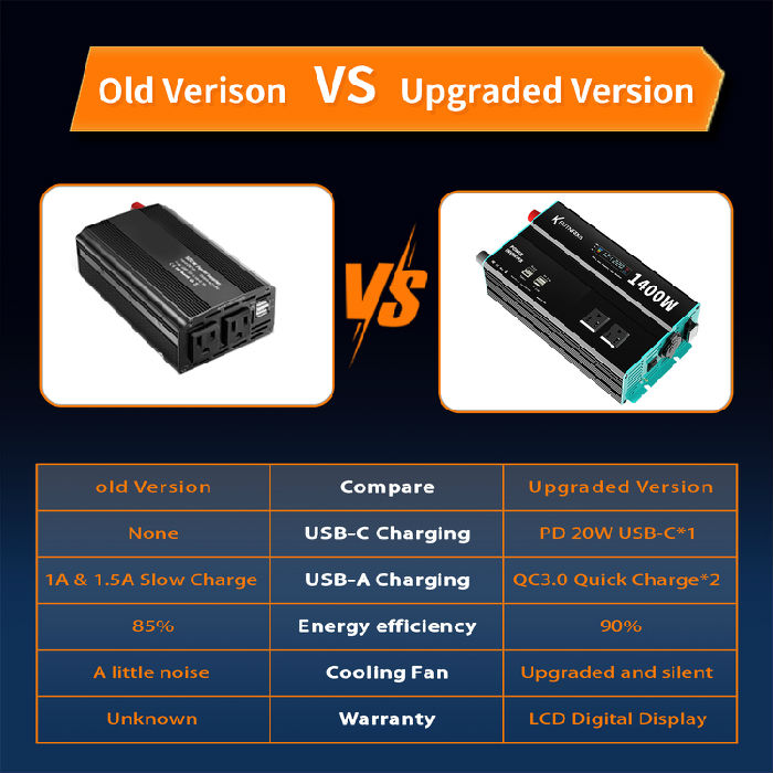Modified Inverter 500W 800W 1000W 1500W 2000W 3000W 12VDC to 120V AC with 2 USB Port,PD 22W QC 18W fast charging