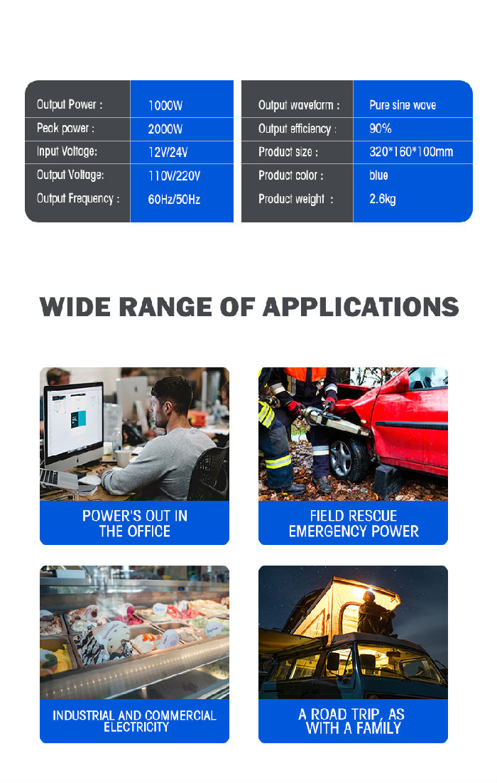 The inverter adopts metal shell,reasonable design and good heat dissipation characteristics