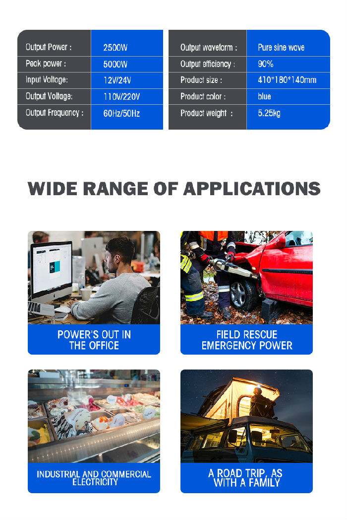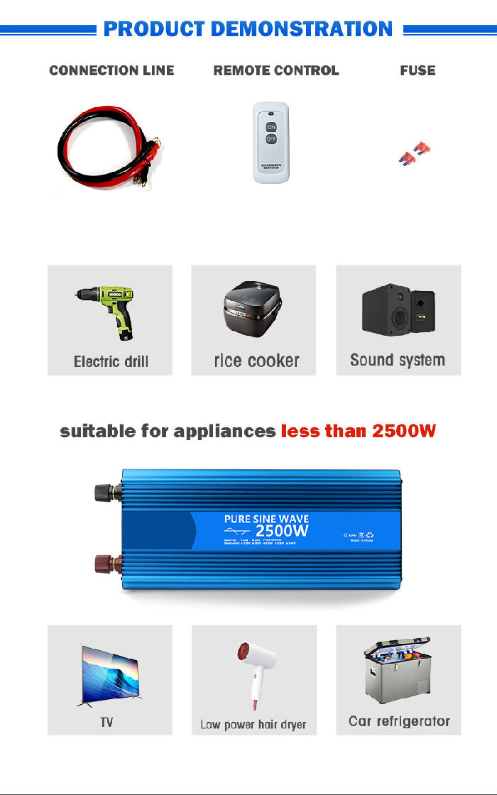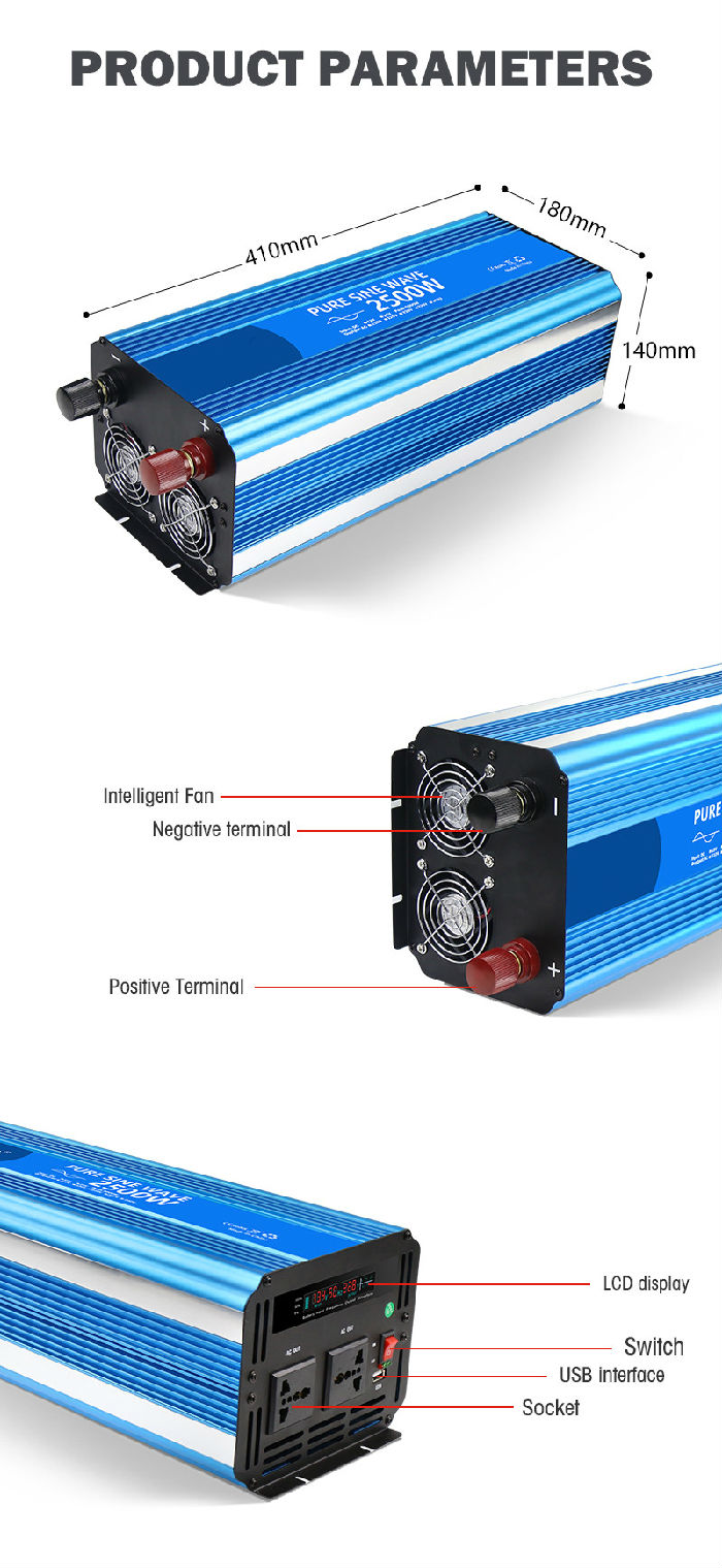 The inverter adopts metal shell,reasonable design and good heat dissipation characteristics