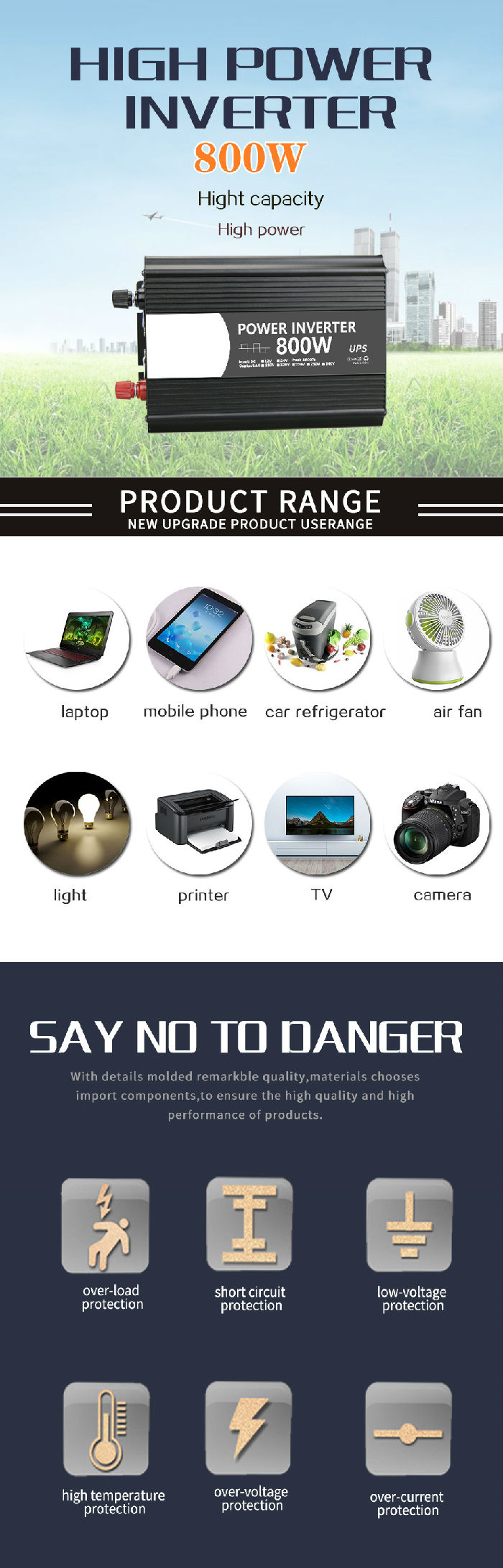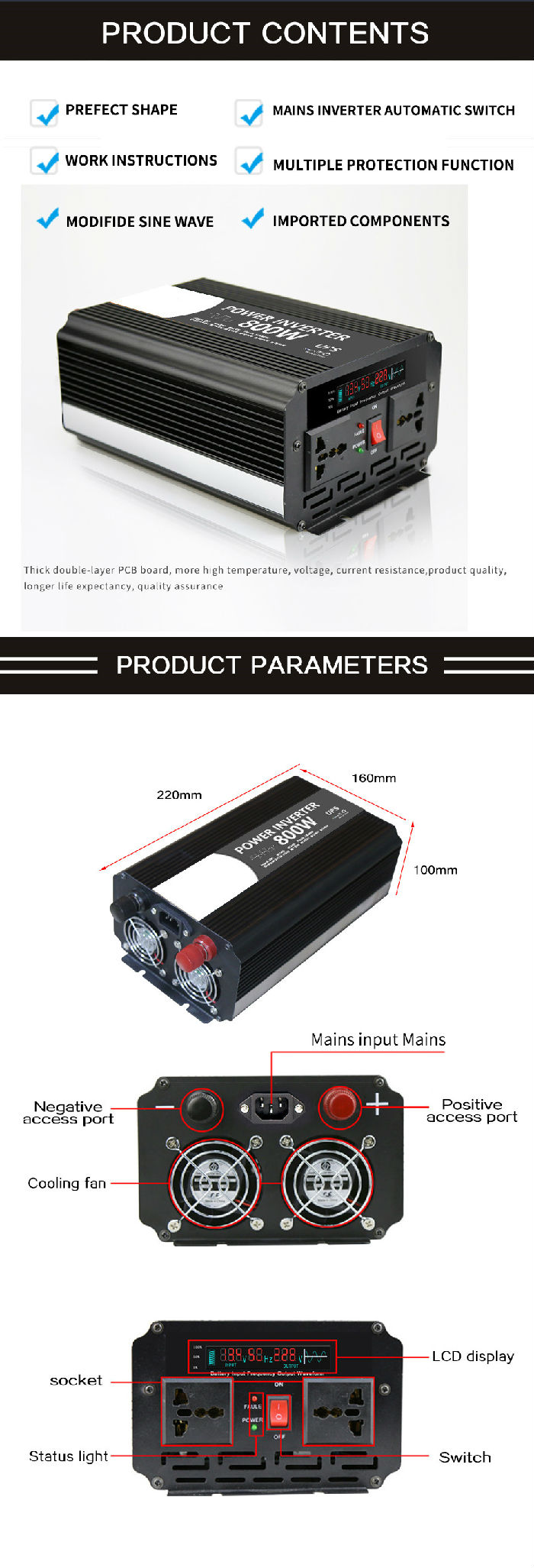 The inverter has advanced anti-interference technology,full-featured protection circuit and soft start circuit,convenient operation mode