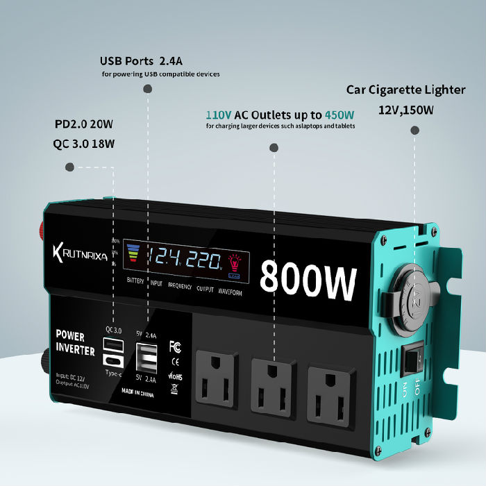 Modified Inverter 500W 800W 1000W 1500W 2000W 3000W 12VDC to 120V AC with 2 USB Port,PD 22W QC 18W fast charging