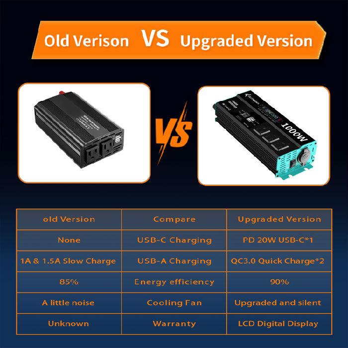 Modified Inverter 500W 800W 1000W 1500W 2000W 3000W 12VDC to 120V AC with 2 USB Port,PD 22W QC 18W fast charging